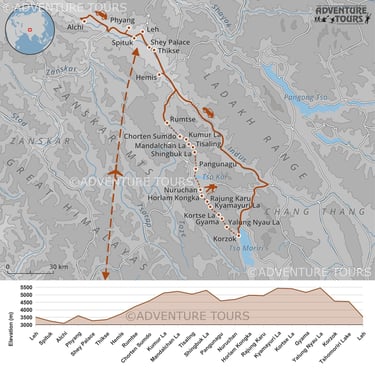 Set out on this unforgettable 7 days trekking adventure through the stunning landscapes of Changthang in Ladakh, beginning in the serene village of Rumtse. This extraordinary journey will take you across majestic high passes, including the towering Kyamayuri La and Yalung Nyau La, both soaring to 5430 metres. As you traverse this rugged terrain, you'll be surrounded by breathtaking vistas of barren mountains, expansive valleys, and ancient Buddhist monasteries that reflect the rich cultural heritage of the region.